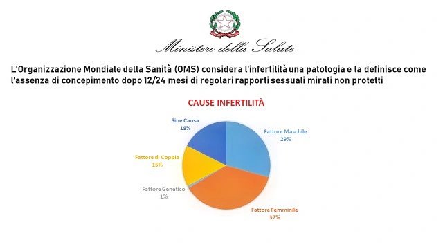 L’Organizzazione Mondiale della Sanità (OMS) considera l’infertilità una patologia e la definisce come l’assenza di concepimento dopo 12/24 mesi di regolari rapporti sessuali mirati non protetti, e colpisce circa il 15% delle coppie in età riproduttiva in tutto il mondo. Secondo i dati forniti dall’Istituto Superiore di Sanità, nel 29,3% dei casi risulta preponderante il fattore maschile, nel 37,1% dei casi risulta preponderante il fattore femminile, nel 17,6% vi è un fattore di coppia, ossia una condizione in cui coesistono una subfertilità maschile e femminile, per il 15,1% l’eziologia rimane sine causa e nel restante 0,9% è invece presente un fattore genetico.